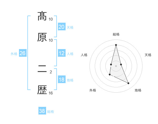 髙原 二歴さんを姓名の画数から五運を鑑定