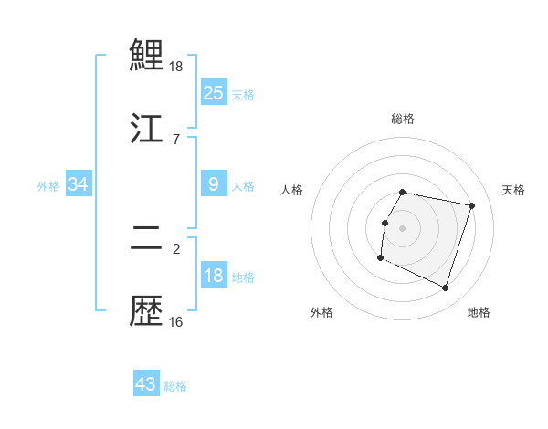 鯉江 二歴さんの総格は43画の2点!