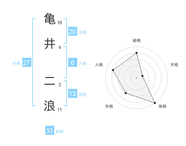 亀井 二浪さんを姓名の画数から五運を鑑定