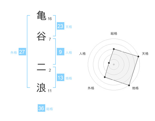 亀谷 二浪さんを姓名の画数から五運を鑑定