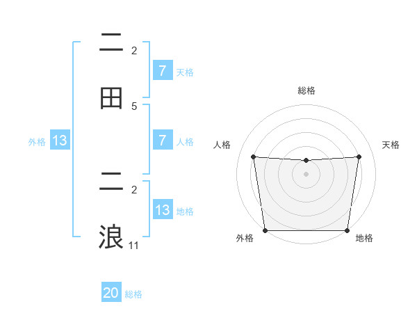 二田 二浪さんの外格は13画の5点!