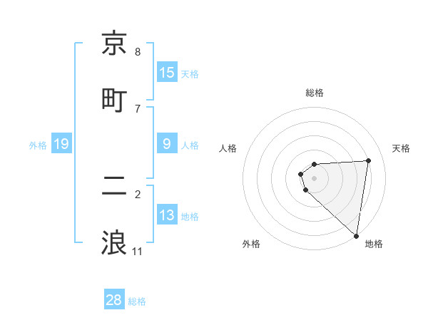 京町 二浪さんの総格は28画の1点!
