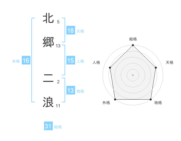 北郷 二浪さんを姓名の画数から五運を鑑定