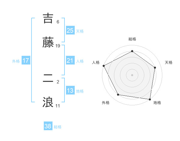 吉藤 二浪さんを姓名の画数から五運を鑑定