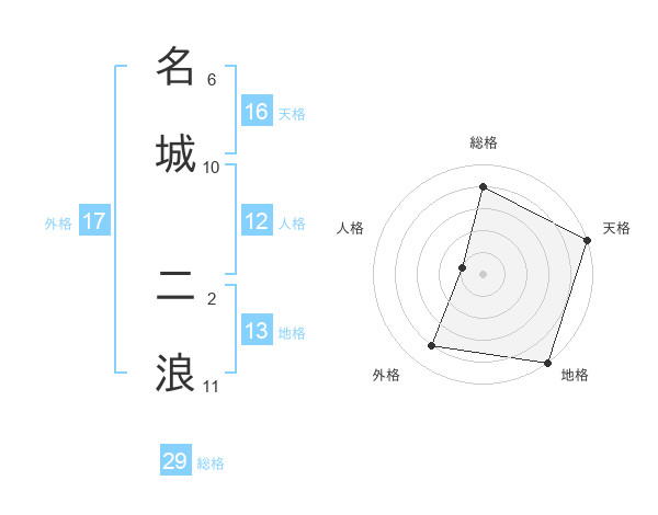 名城 二浪さんの総格は29画の4点!