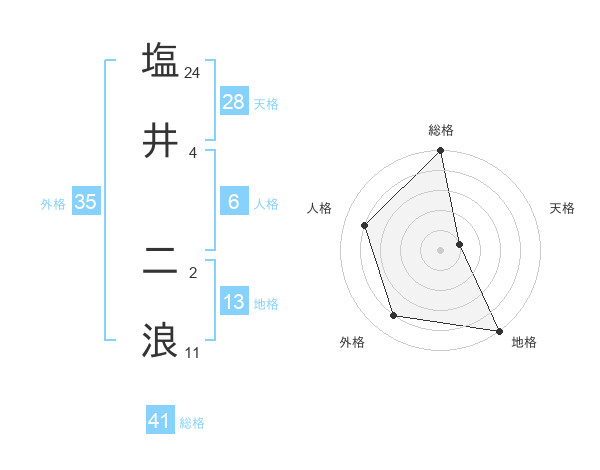 塩井 二浪さんの総格は41画の5点!