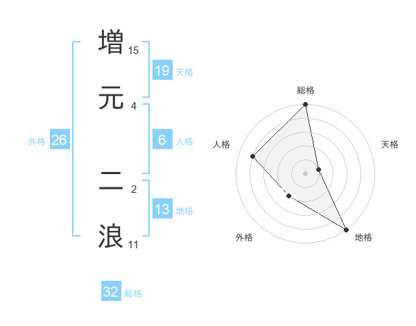 増元 二浪さんを姓名の画数から五運を鑑定