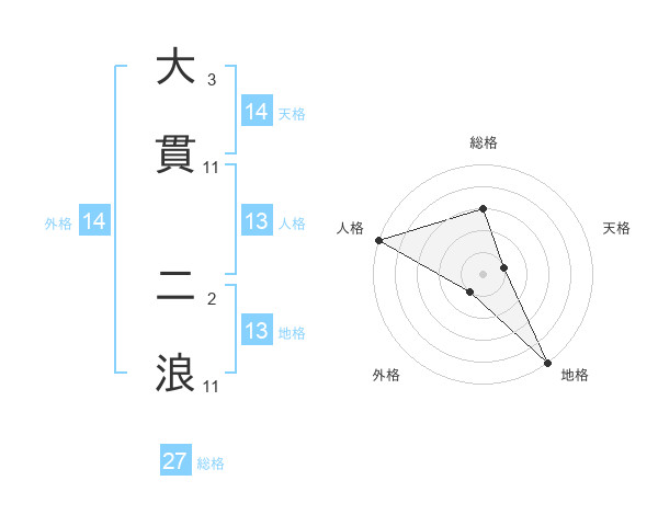大貫 二浪さんの総格は27画の3点!