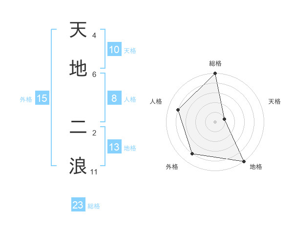 天地 二浪さんの総格は23画の5点!