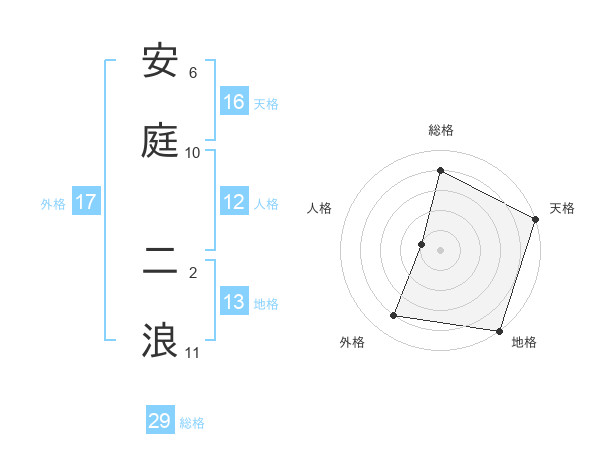 安庭 二浪さんの地格は13画の5点!
