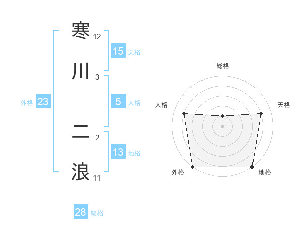 寒川 二浪さんを姓名の画数から五運を鑑定