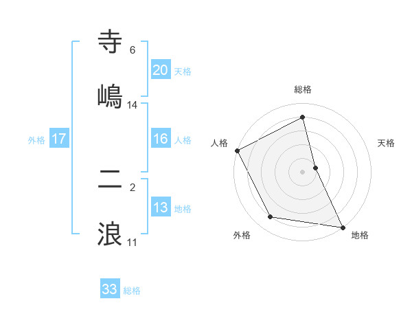 寺嶋 二浪さんの総格は33画の4点!