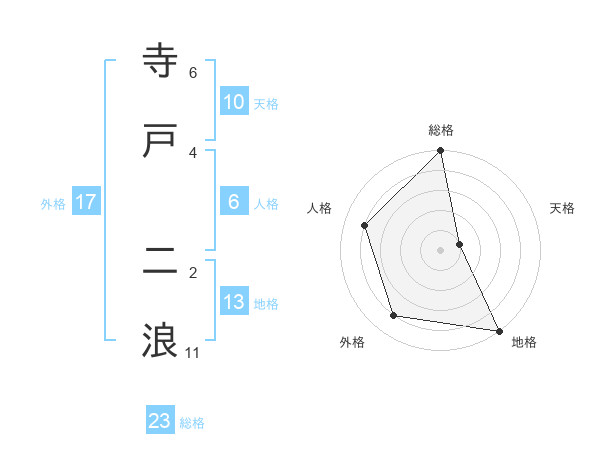 寺戸 二浪さんの総格は23画の5点!