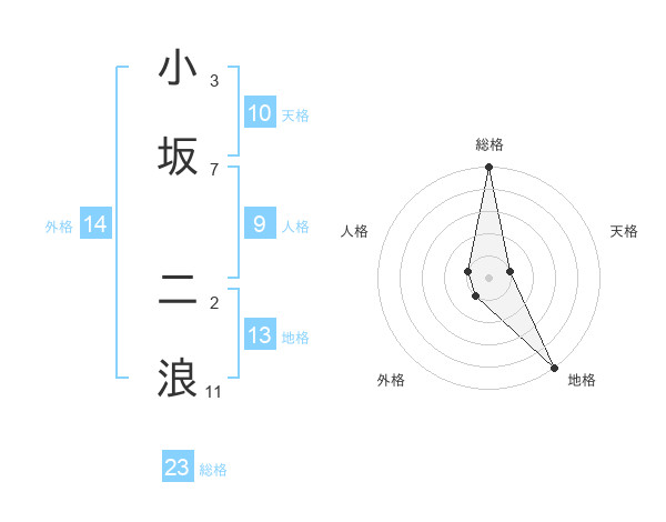 小坂 二浪さんを姓名の画数から五運を鑑定