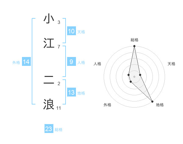小江 二浪さんの総格は23画の5点!