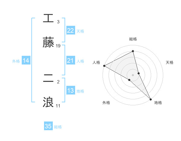 工藤 二浪さんの総格は35画の4点!