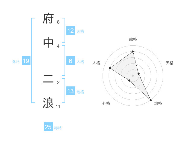 府中 二浪さんの総格は25画の4点!