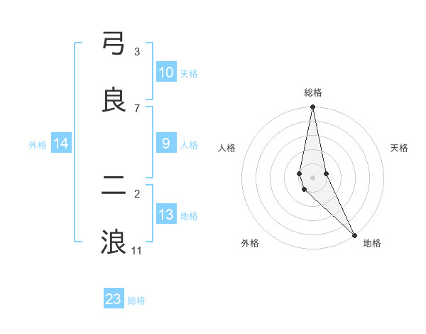 弓良 二浪さんの総格は23画の5点!