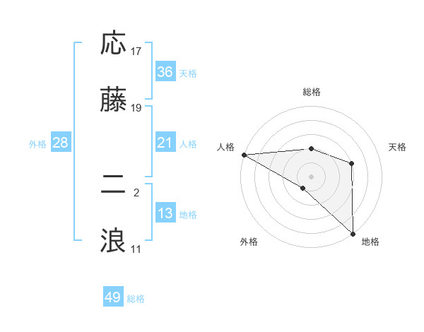 応藤 二浪さんを姓名の画数から五運を鑑定