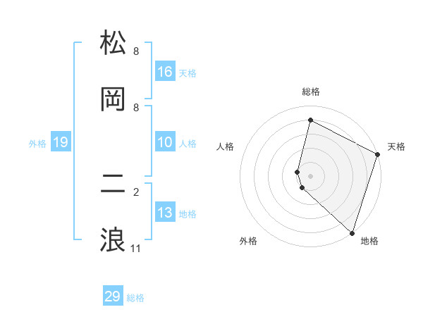 松岡 二浪さんの総格は29画の4点!