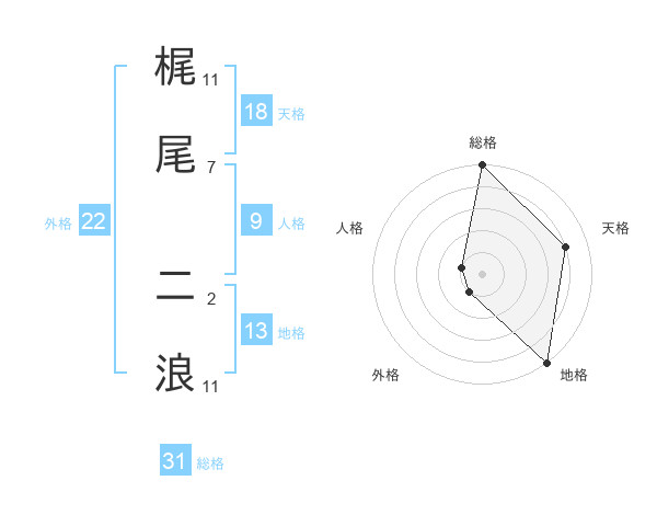 梶尾 二浪さんの総格は31画の5点!