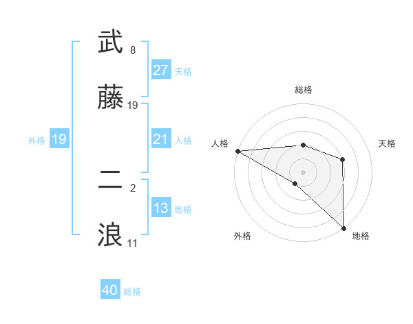 武藤 二浪さんを姓名の画数から五運を鑑定