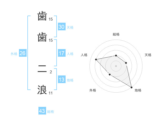 歯歯 二浪さんの外格は26画の2点!