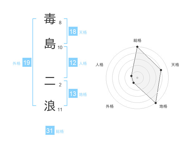 毒島 二浪さんの総格は31画の5点!
