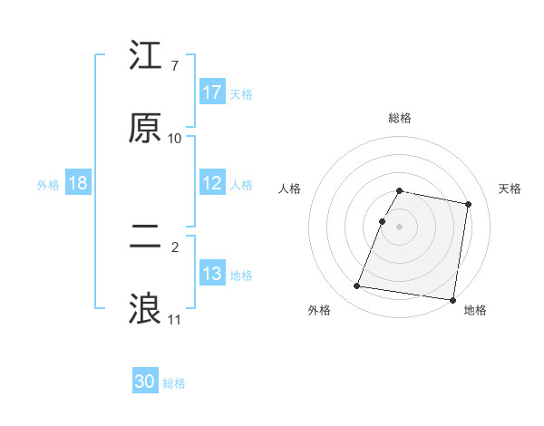江原 二浪さんの天格は17画の4点!