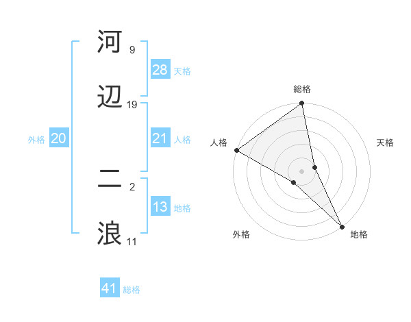 河辺 二浪さんの総格は41画の5点!