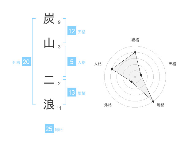 炭山 二浪さんを姓名の画数から五運を鑑定