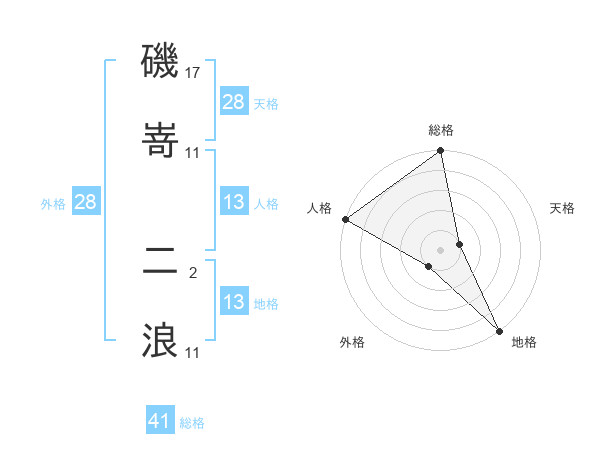 磯嵜 二浪さんの地格は13画の5点!