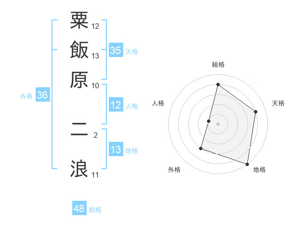 粟飯原 二浪さんの地格は13画の5点!