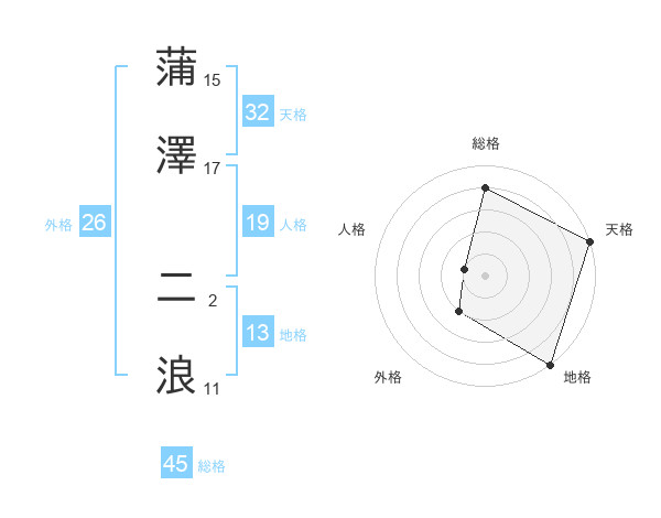 蒲澤 二浪さんを姓名の画数から五運を鑑定