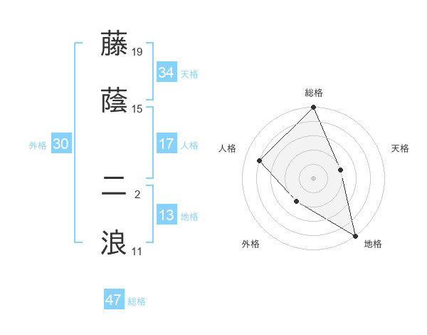 藤蔭 二浪さんを姓名の画数から五運を鑑定