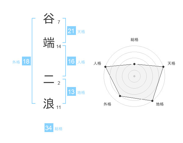 谷端 二浪さんを姓名の画数から五運を鑑定