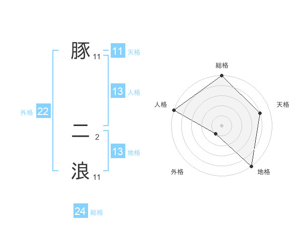 豚 二浪さんの地格は13画の5点!