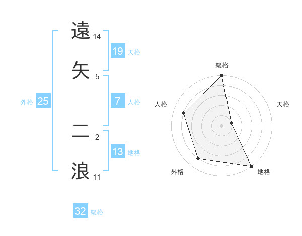 遠矢 二浪さんの総格は32画の5点!