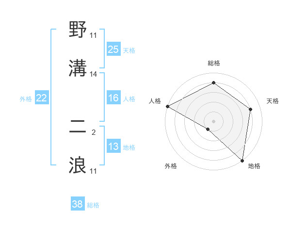 野溝 二浪さんを姓名の画数から五運を鑑定
