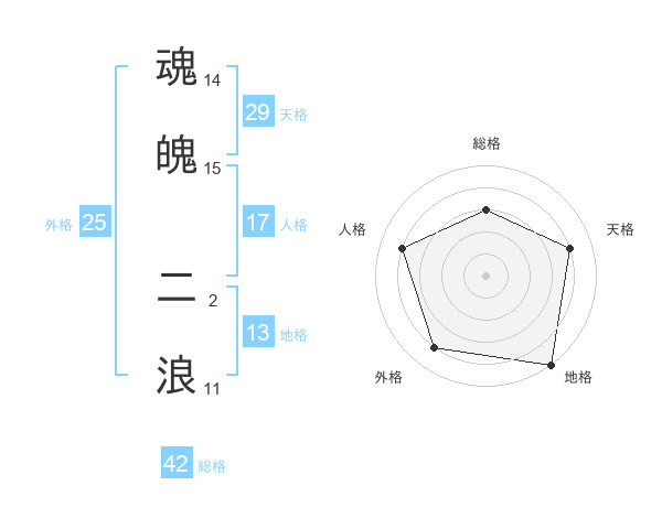 魂魄 二浪さんの総格は42画の3点!