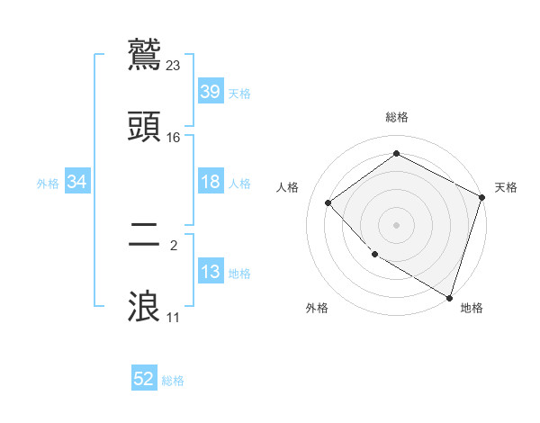 鷲頭 二浪さんを姓名の画数から五運を鑑定