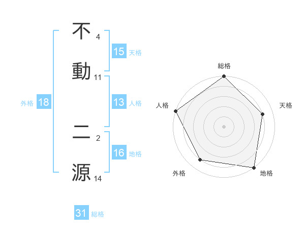不動 二源さんの天格は15画の4点!
