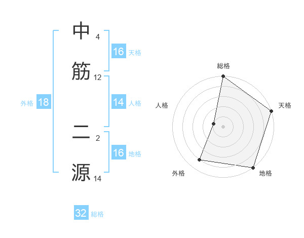 中筋 二源さんの総格は32画の5点!