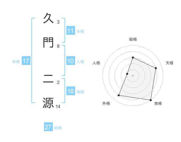 久門 二源さんの総格は27画の3点!