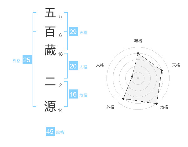 五百蔵 二源さんの総格は45画の4点!