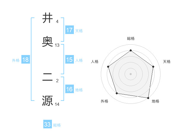 井奥 二源さんの総格は33画の4点!