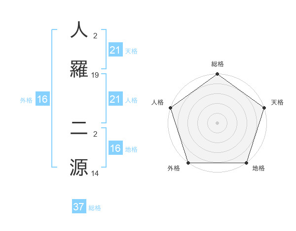 人羅 二源さんの総格は37画の5点!