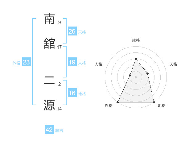 南舘 二源さんの外格は23画の5点!
