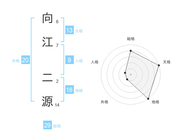 向江 二源さんの総格は29画の4点!