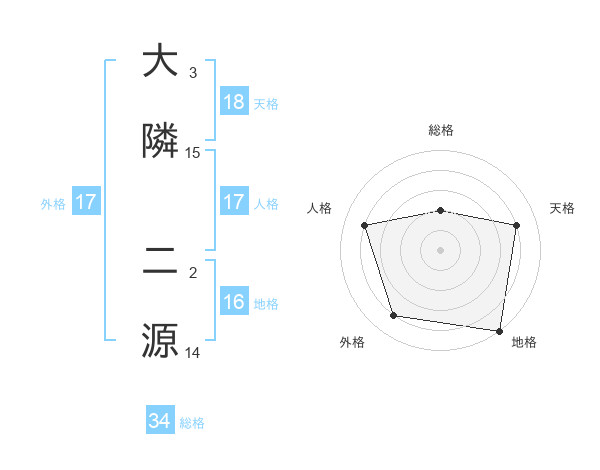 大隣 二源さんの総格は34画の2点!